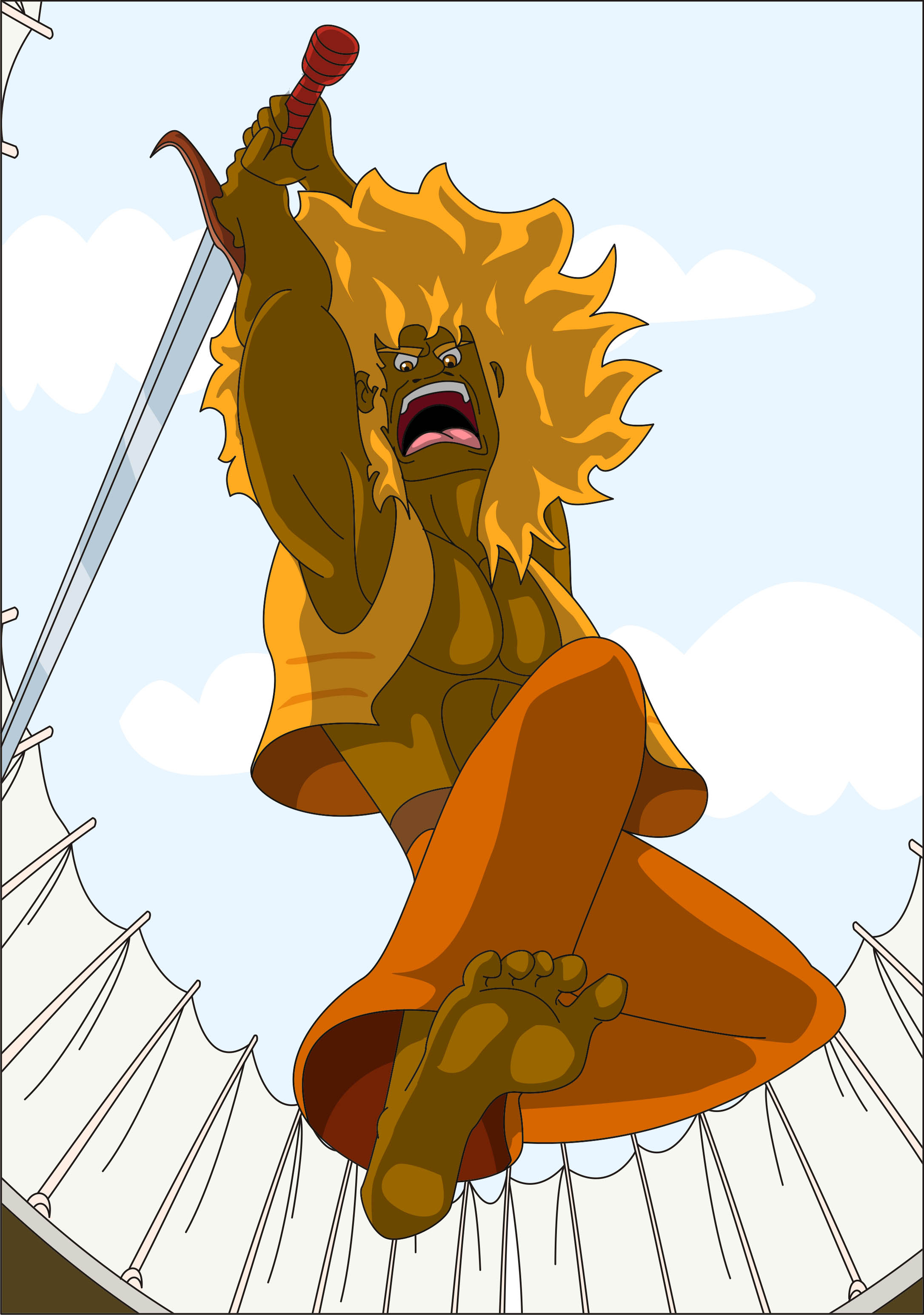 No podia sortir En Lleó sense la seva espasa. Aquí hi ha algú que rebrà un impacte d'uns quants punts... de sutura. ROARRRR!