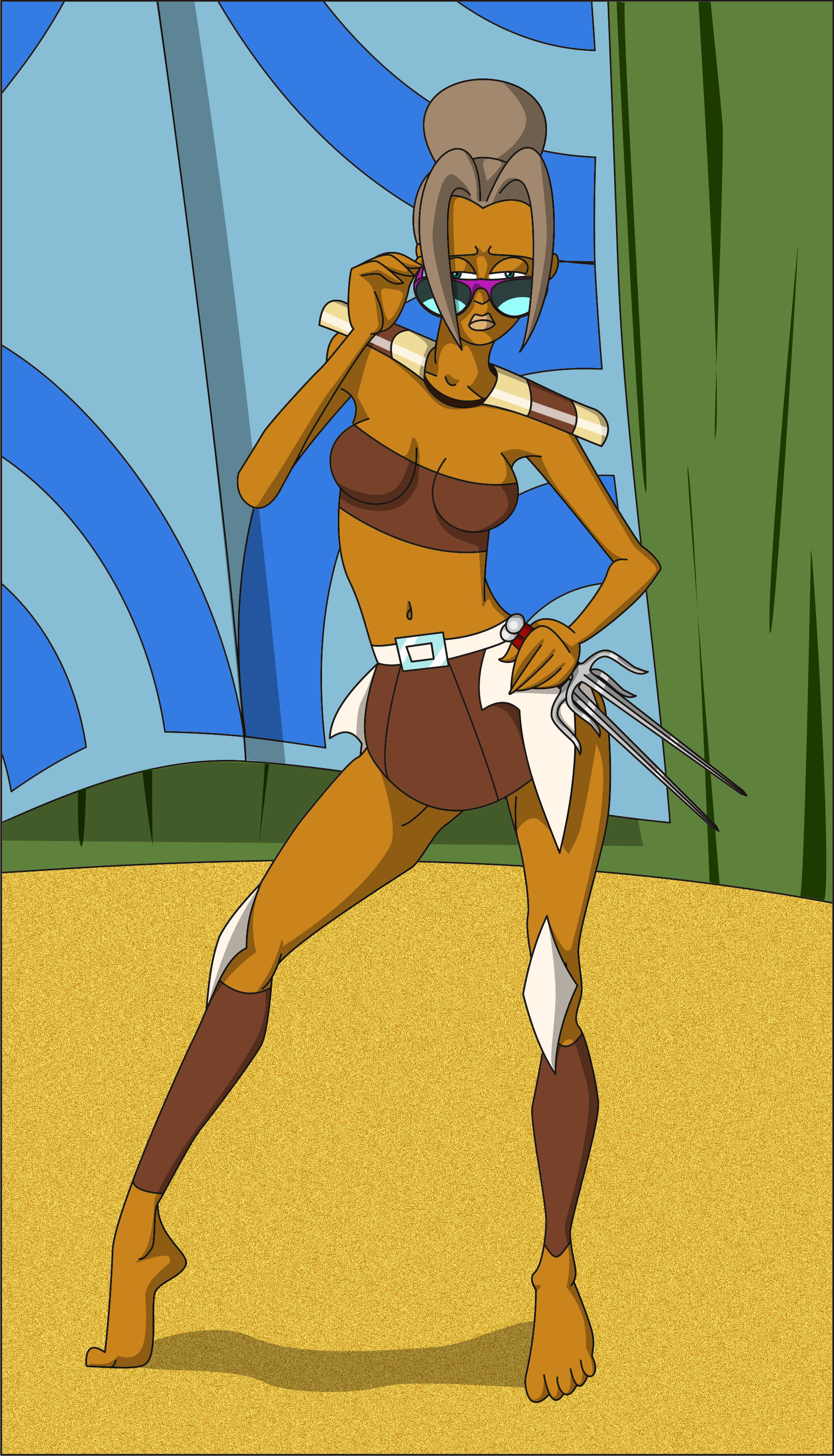 L'Audàcia i en Protàgores ens saluden abans del seu combat. La eixerida guerrera ha escollit la seva arma preferida: el ganivet dels seus quadravis, els Serrallonga.