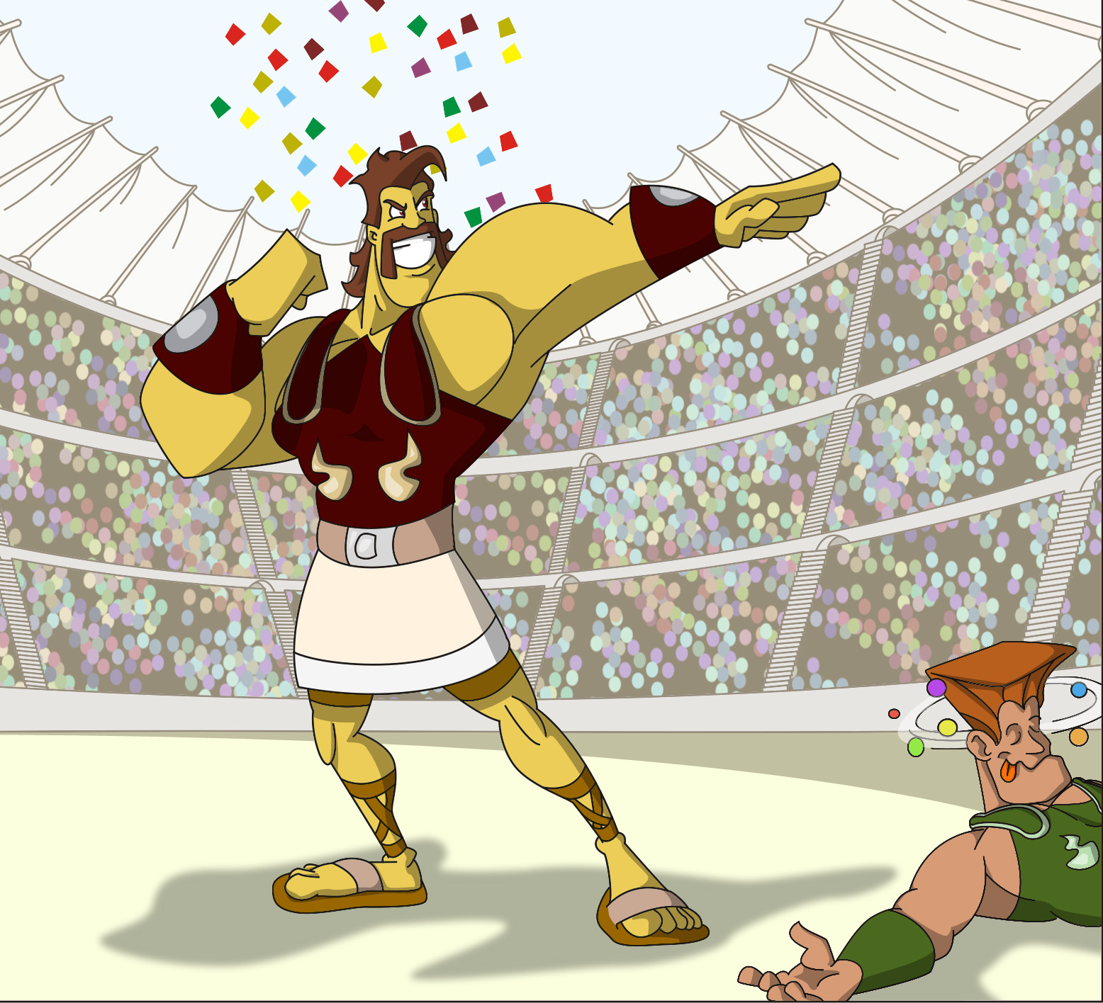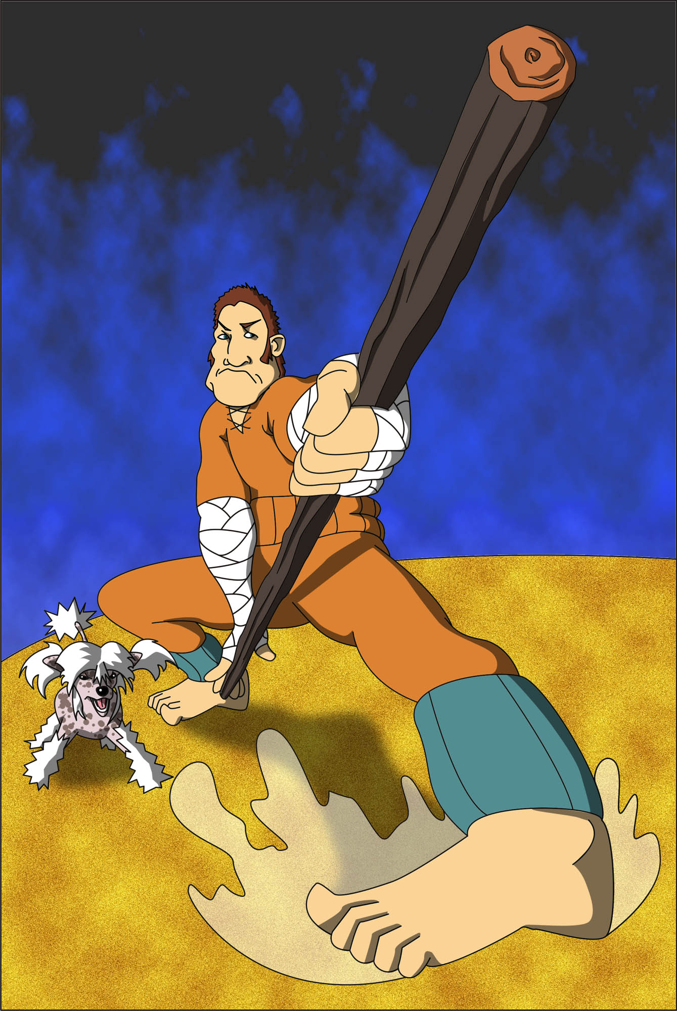 El primer és el nostre líder, Pumpum Pam, a punt de fer el cop de gràcia a un pobre desgraciat que ha tingut la boja idea d'enfrontar-se a ell.