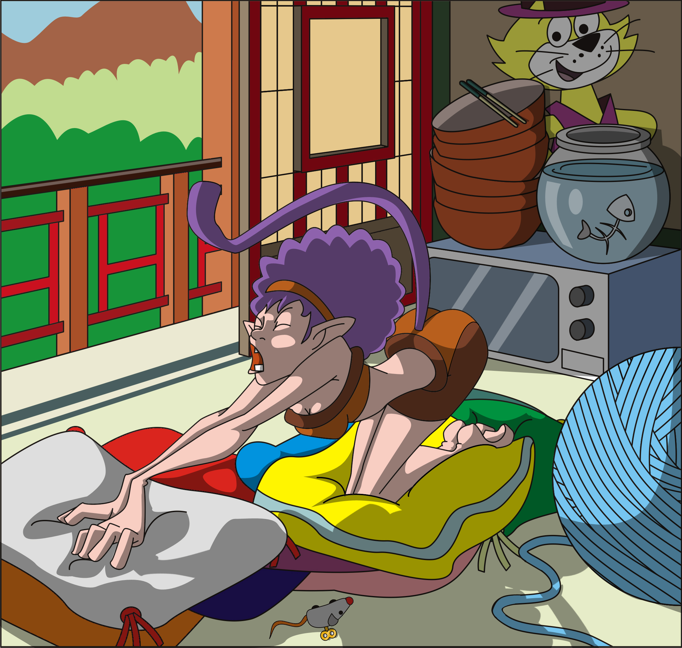 Shotet es desperta de la seva setena o vuitena migdiada. Mèu!