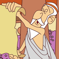 Cal·líope, Crunch, Chiun i Protàgores petan la xerrada (malgrat que més aviat és un monòleg).